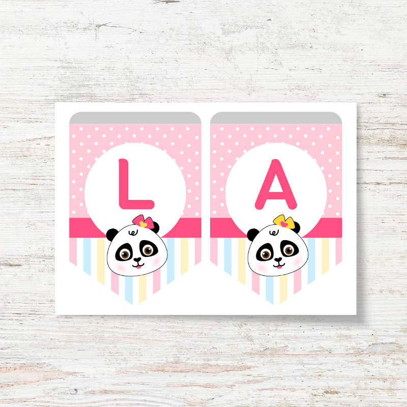 Decora a festa com a Bandeirola Panda personalizada com o nome!