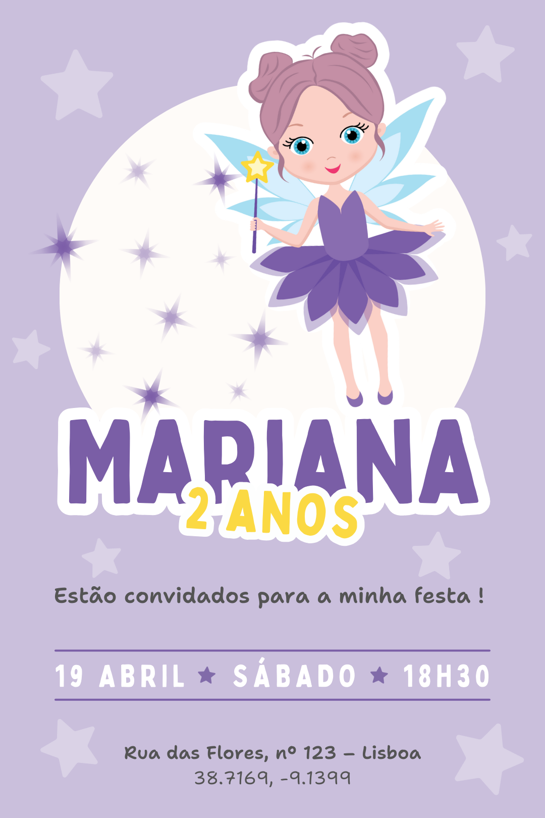 Surpreende os convidados com um convite digital mágico e personalizado com o tema Fada!