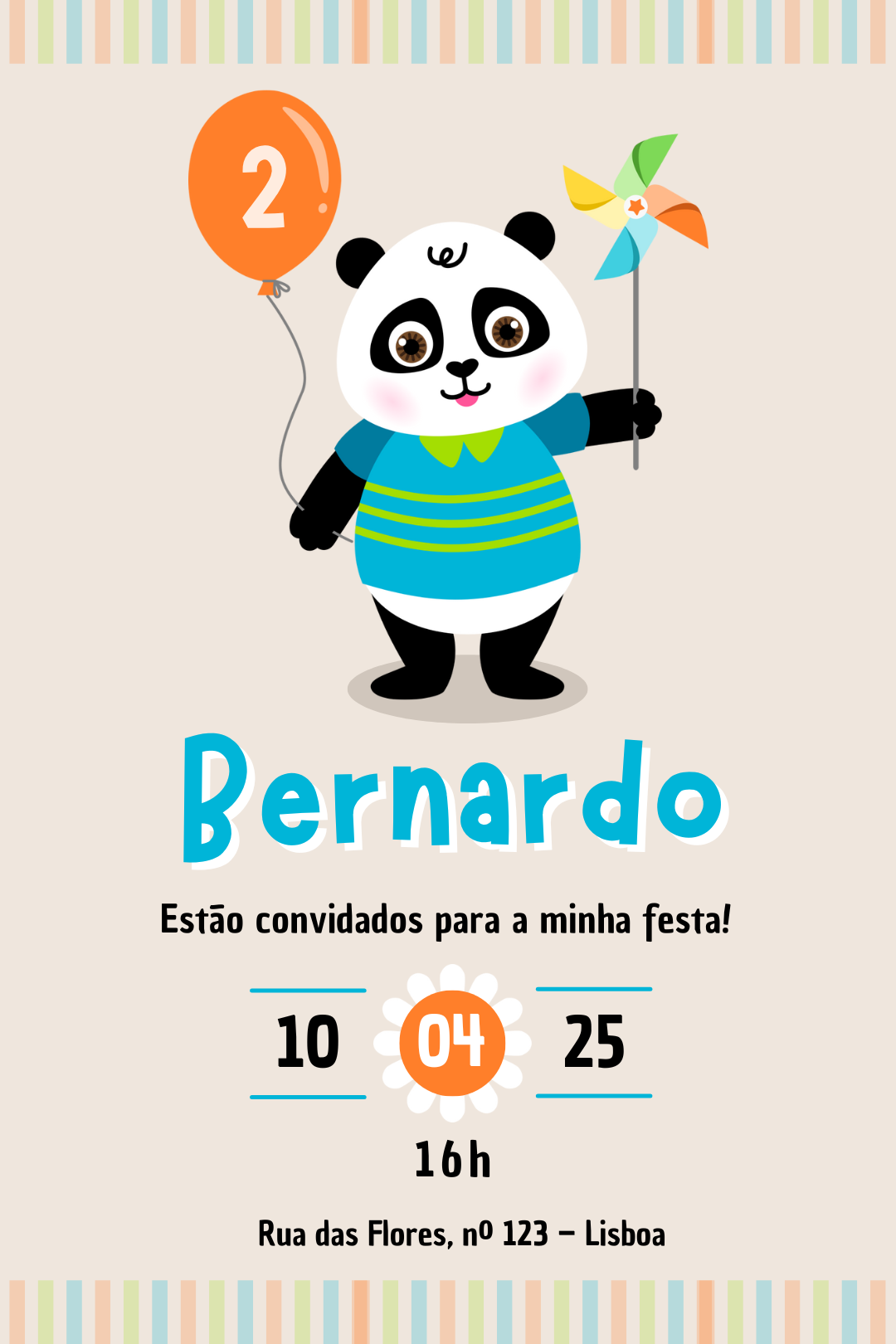 Surpreende os convidados com um convite digital mágico e personalizado com o tema Panda!