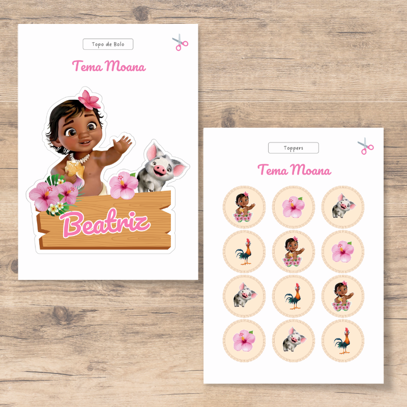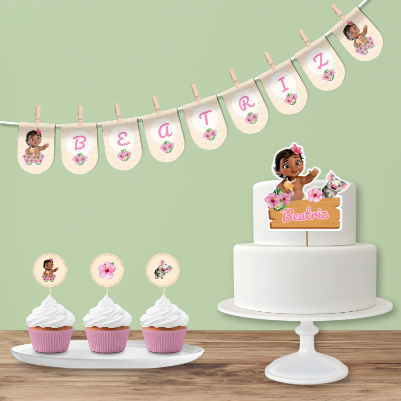 Dá mais alegria à festa com o Kit Decoração Moana – Personalizado com Nome e Idade!