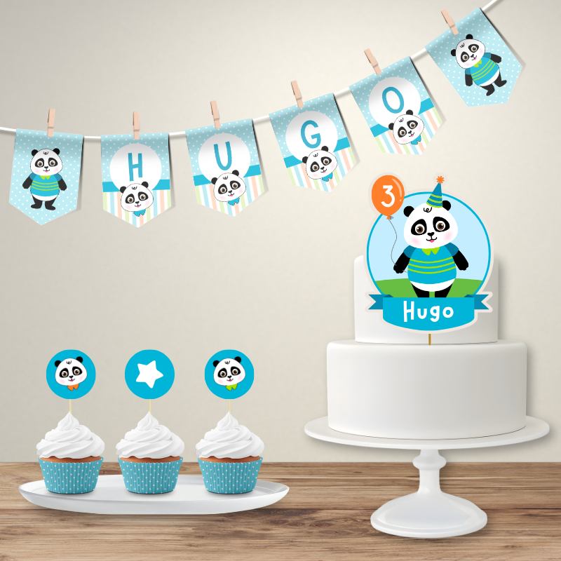 Dá mais alegria à festa com o Kit Decoração Panda – Personalizado com Nome e Idade!