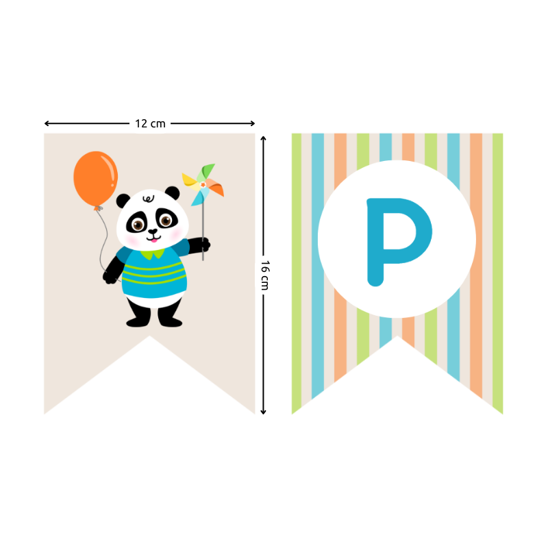 O kit inclui bandeirola para formar Parabéns ou Feliz Aniversário (cada bandeira mede aproximadamente 12 × 16 cm).